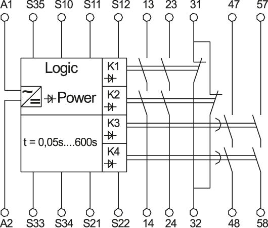 | Anwendung | Für Nothalt- und Schutztürapplikationen sowie zweikanalige Lichtschrankenüberwachung mit Schaltverzögerung (0,05s - 600s abfallverzögert) |
